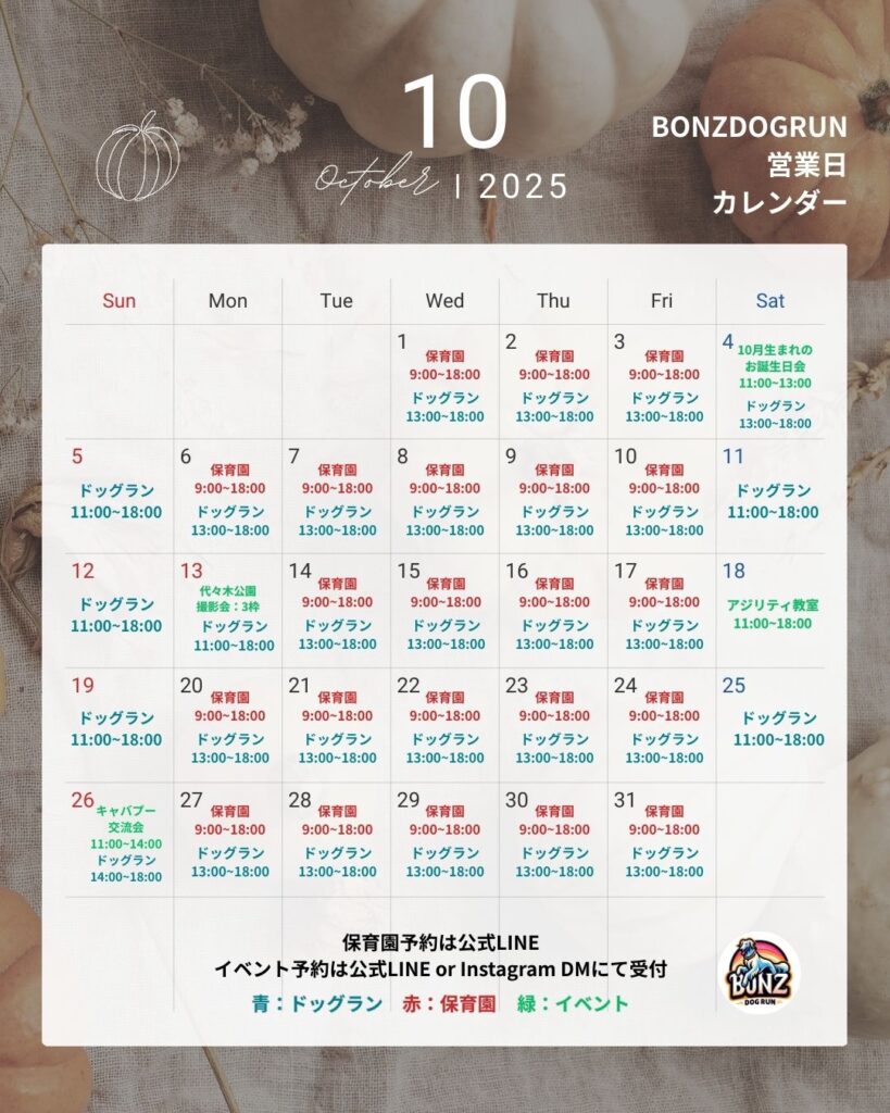 ※ドッグランは不定休。わんこ保育園は土曜日、日曜日、祝日がお休みとなっております。